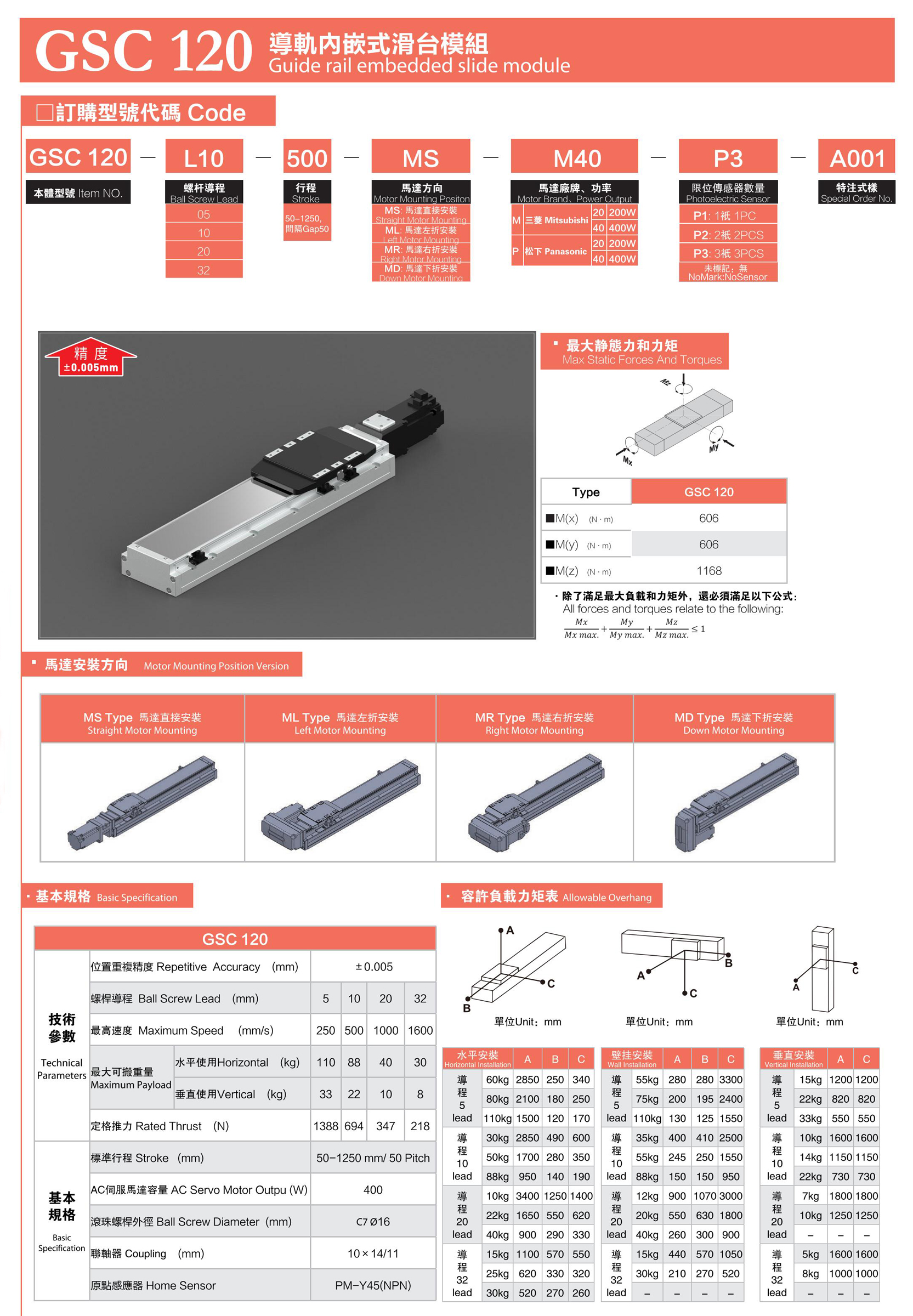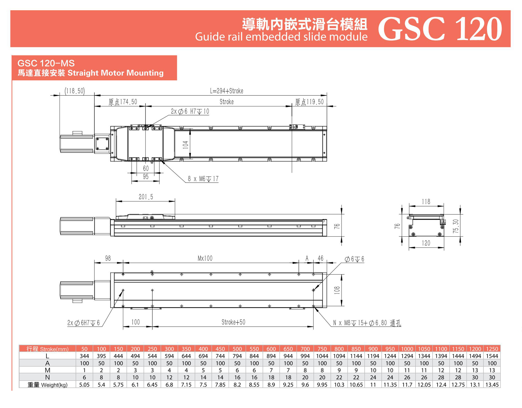 GSC120內(nèi)嵌式滑臺(tái)模組