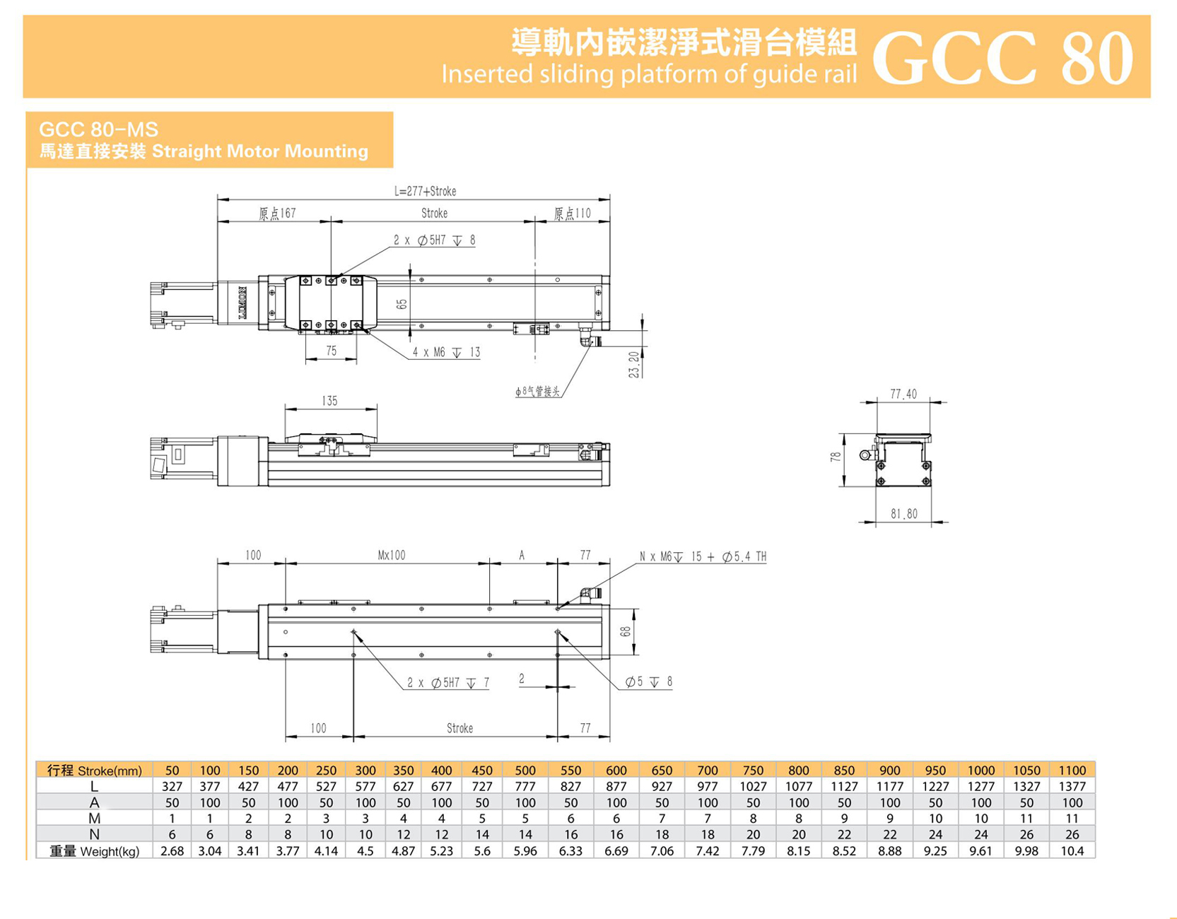 GCC80內嵌潔凈式滑臺模組