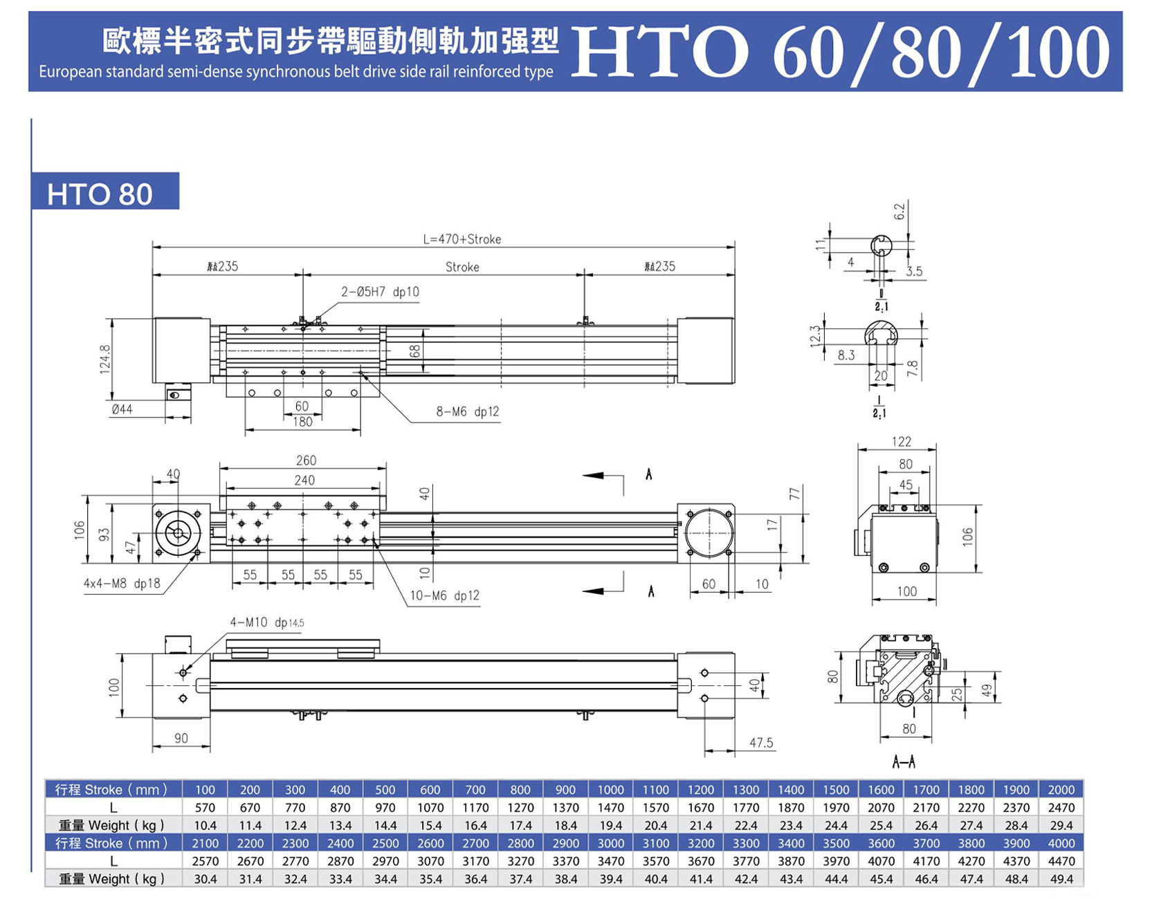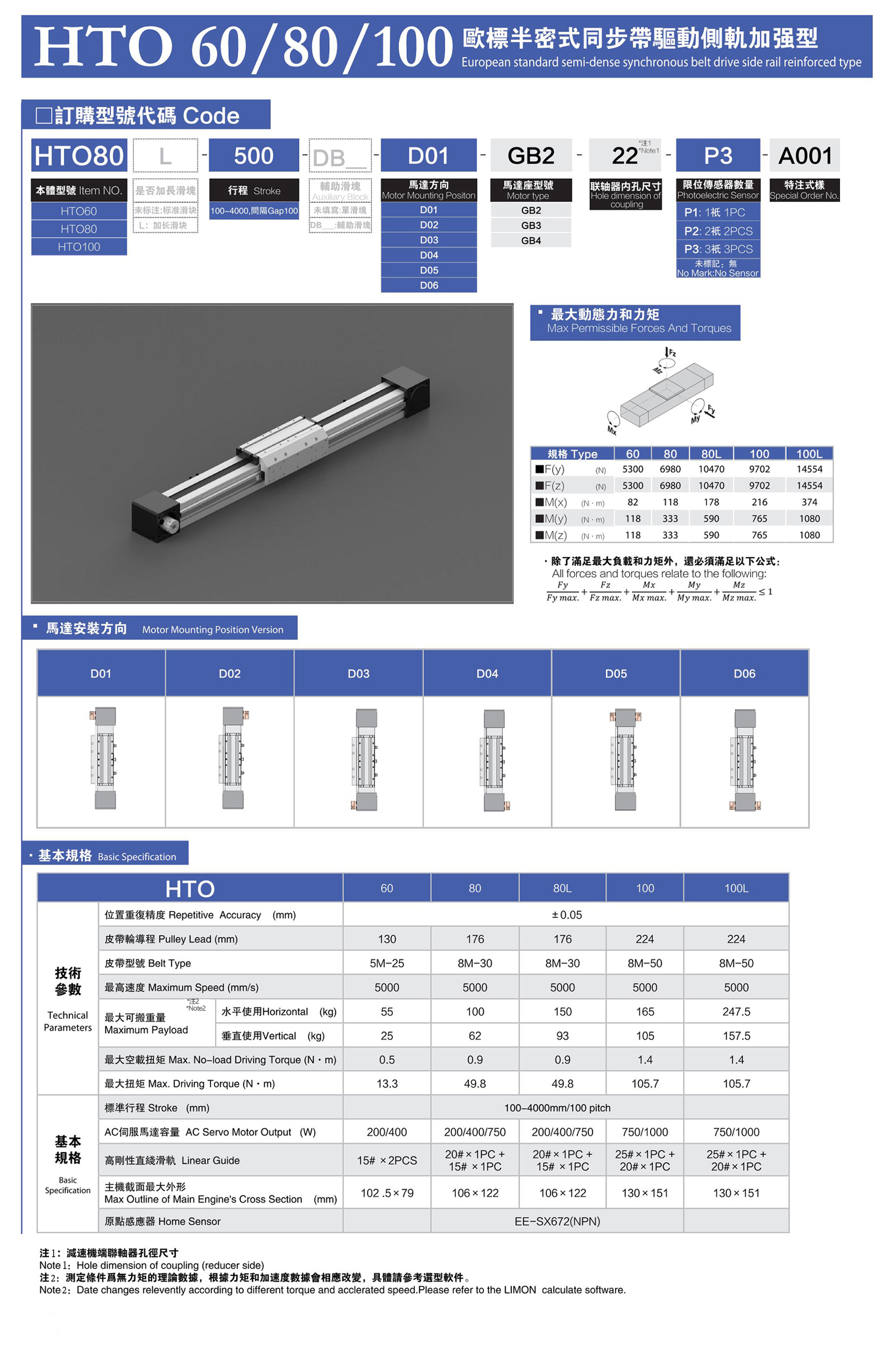 HTO60/80/80L/100/100L歐標半密式同步帶驅動側軌加強型